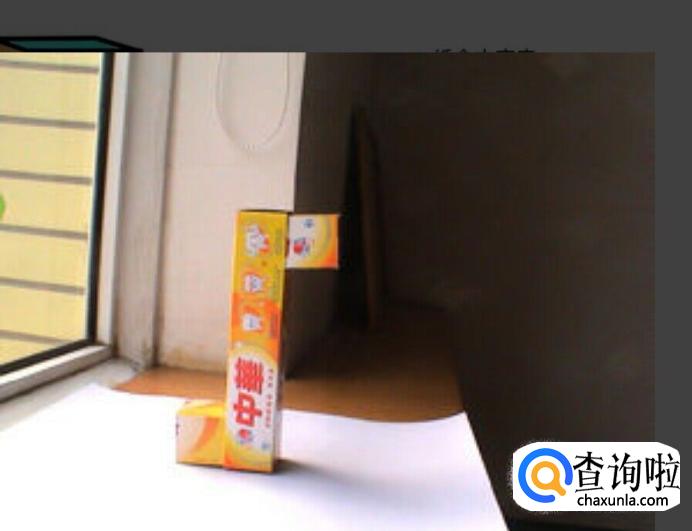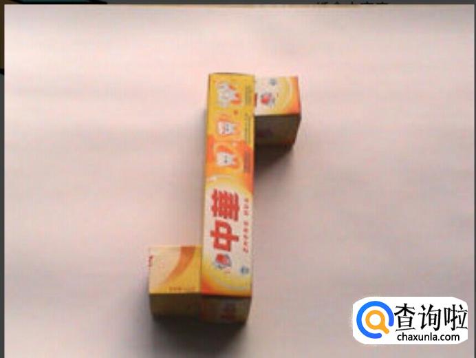 将另一个牙膏盒上面剪一个洞,如图所示。