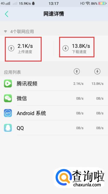 进入【网速详情】就可以看到上传速度,下载速度,也可以看到你用的软件运行时的网速情况啦。