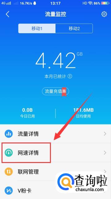 进入【流量监管】后,找到【网速详情】并进入。