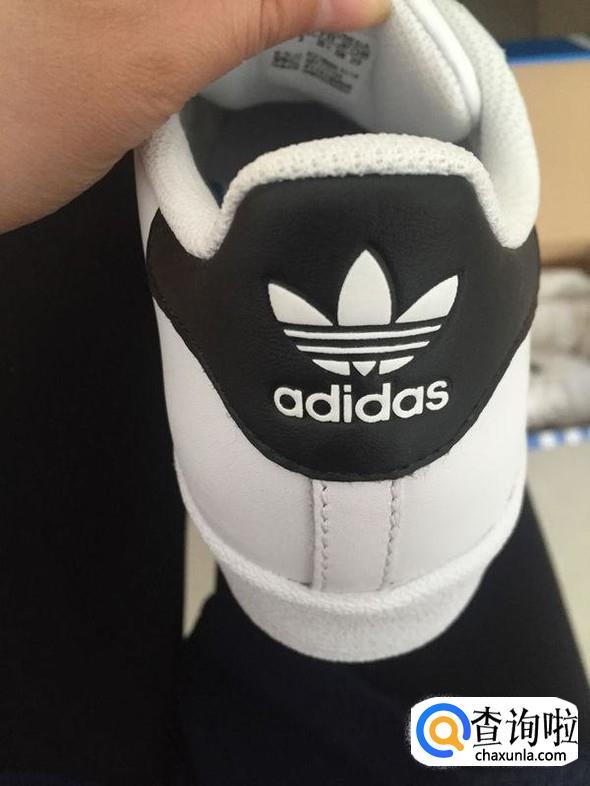 还有一点是我们可以看阿迪达斯的LOGO,真的LOGO是大小一致,并且中间的两根线是不一样长的,但是假的阿迪达斯就不会这样哦。