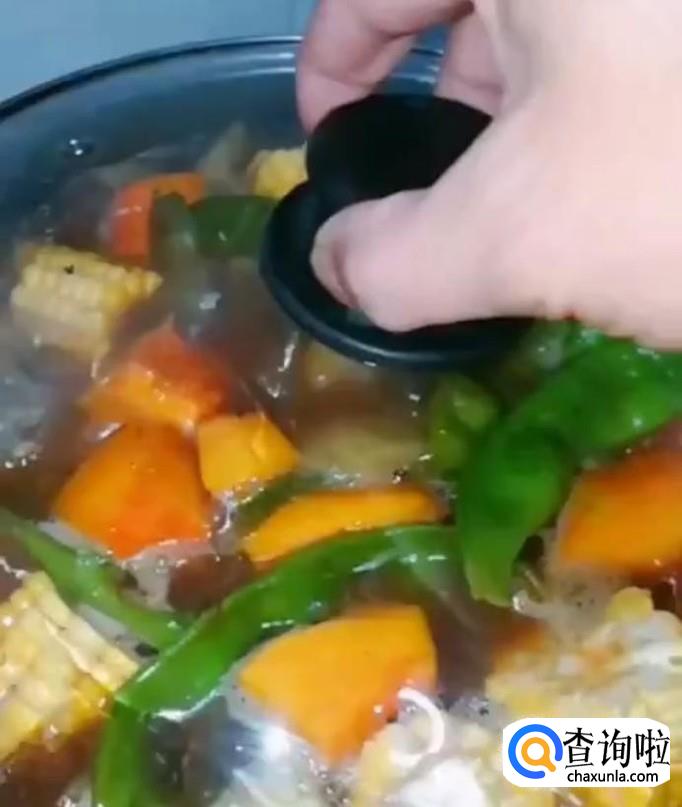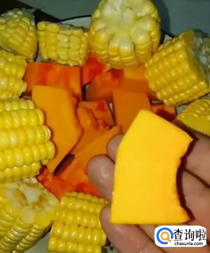 放入我们准备好的南瓜与玉米,盖上锅盖,中火炖一个小时左右