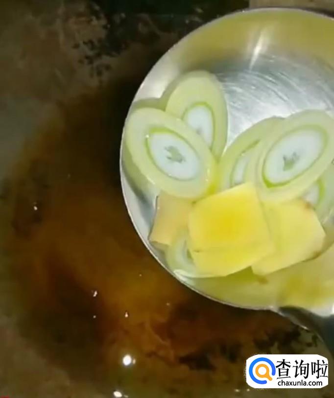 接着我们在一个干净的锅中放入少许油,放入葱姜爆香