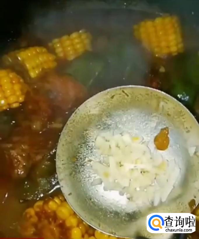 炖至汤汁浓稠,放入少许蒜末,翻炒一下,美味的玉米烧排骨就制作完成啦!