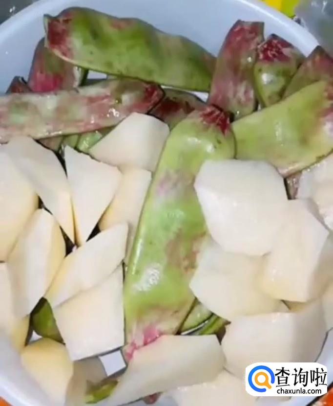 然后我们准备一下配菜:土豆,豆角,玉米,南瓜清洗干净,备用