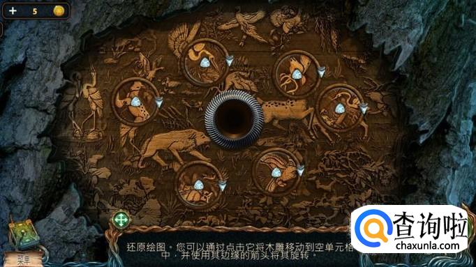 将我们收集到的三块木雕安到拼图上,然后再通过移动转动木雕将拼图调整到完整。大树上的门就会开启,苏珊就会见到儿子Jimmy了。