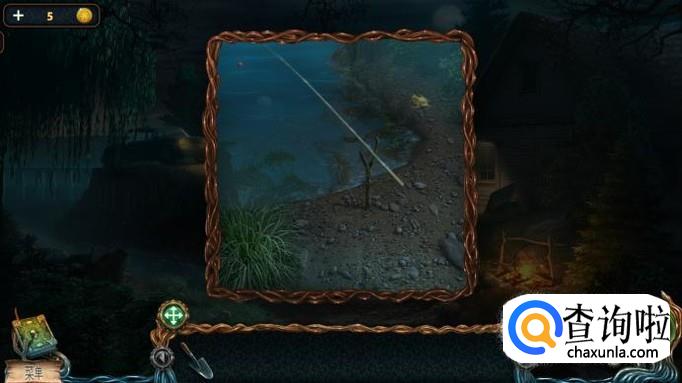 点击右上方那个类似于地窖的东西,用匕首隔断上面的绳子,地窖打开后,我们可以拿走里面的鱼竿。