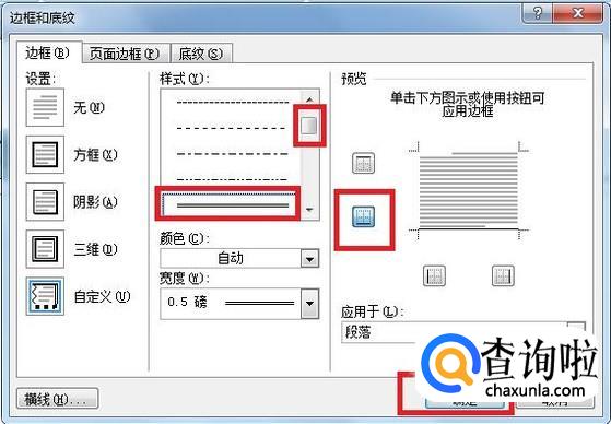 在选项框中,如图所示,移动“样式”选择滑块,在下方就能找到双横线样式,选择之后,然后点击下框线图标(顺序不能错,必须是先选样式,再点击图标),点击确定。
