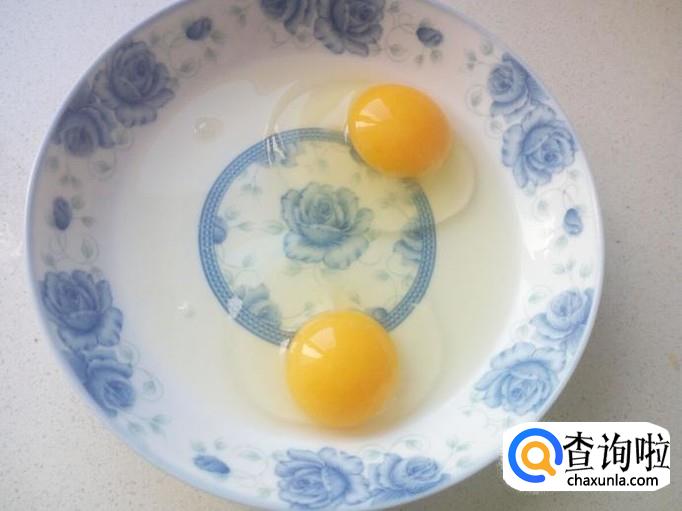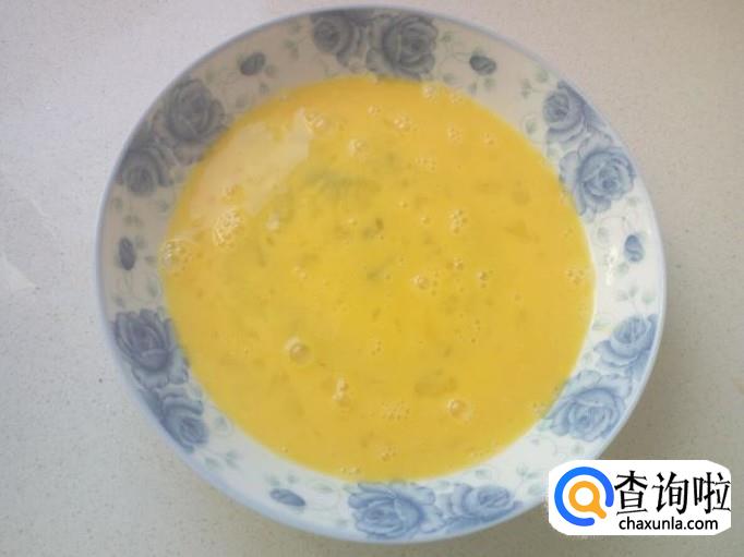 鸡蛋打入盘中,搅拌成蛋液。