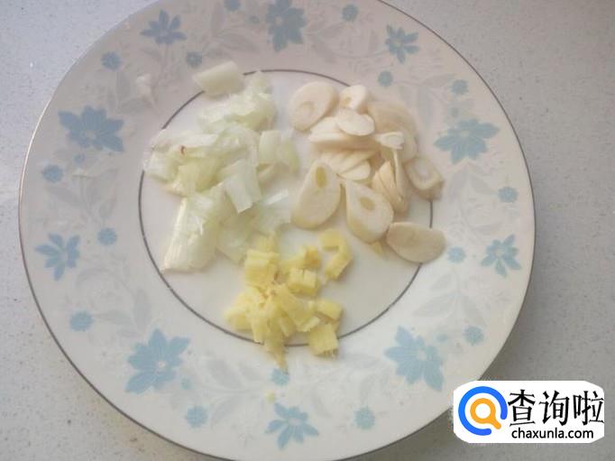 葱,姜,切末,蒜切片。装盘备用。