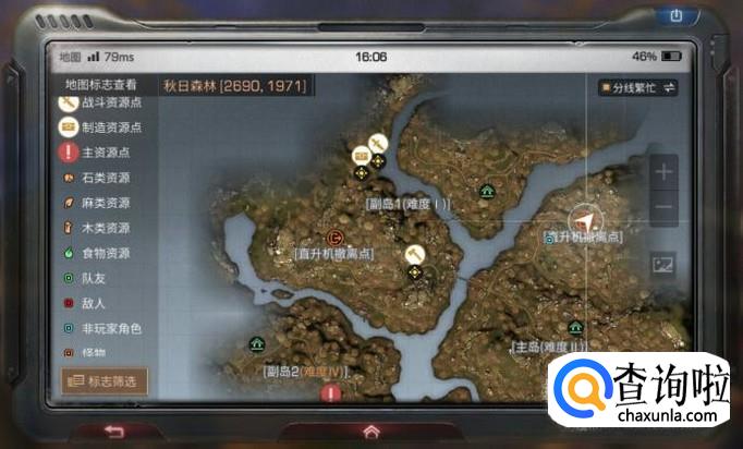 到达采集资源的地方,可以查看右上角的小地图,获取食物资源的地点,其中绿色苹果的形状就是食物资源的意思,一般包括蔬菜和水果。