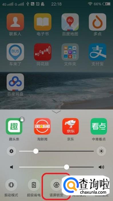 重新调出刚才的弹窗,如图所示,点击一下“竖屏锁定”按钮,当按钮处于灰色状态时,表示“竖屏锁定”关闭,就可以自动旋转屏幕了。
