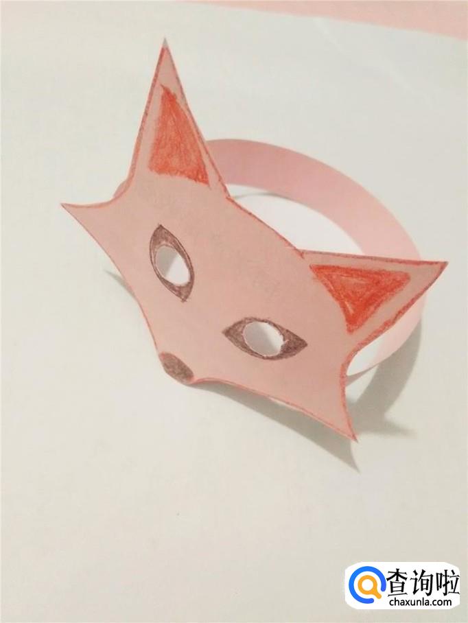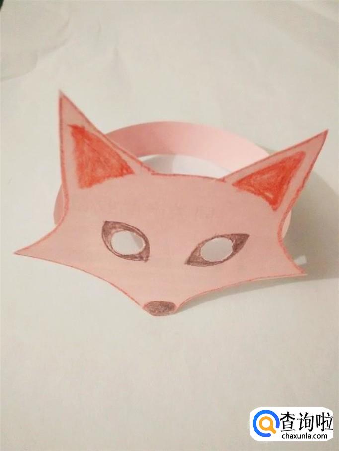 用胶棒在多出来的部分抹上胶,粘在面具的后面两侧,狐狸面具就做完了。