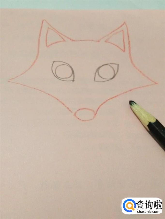 根据自己眼睛的位置,用黑笔画出狐狸的眼睛和眼珠。再用红笔画出耳朵。