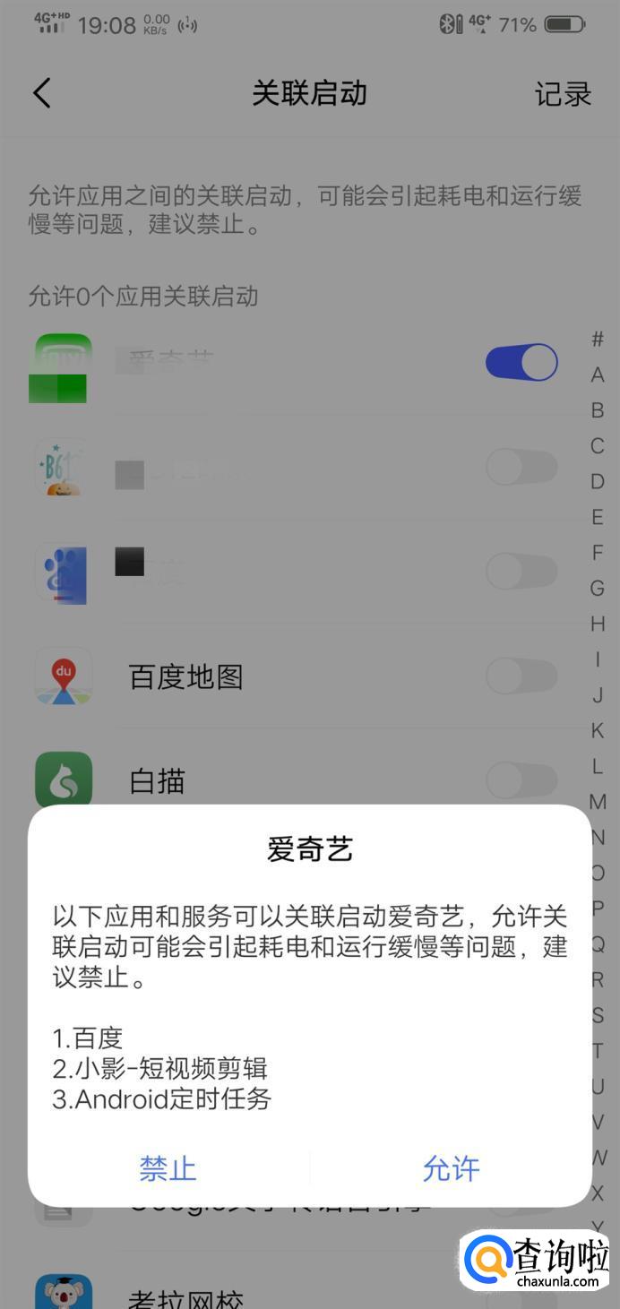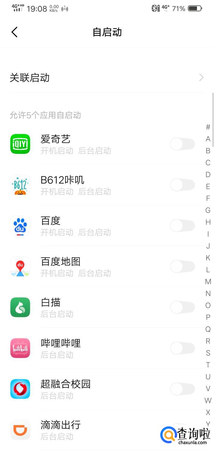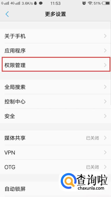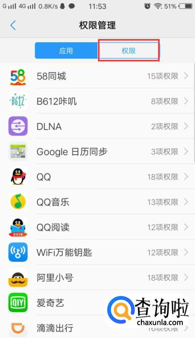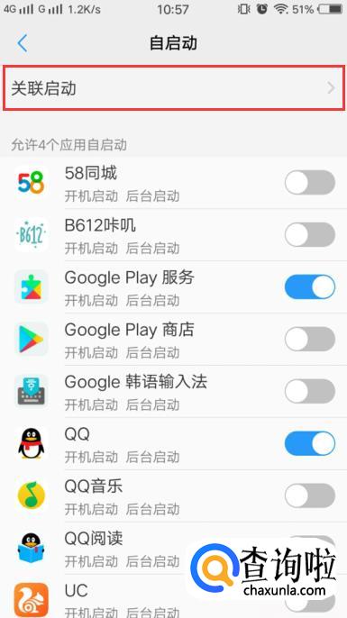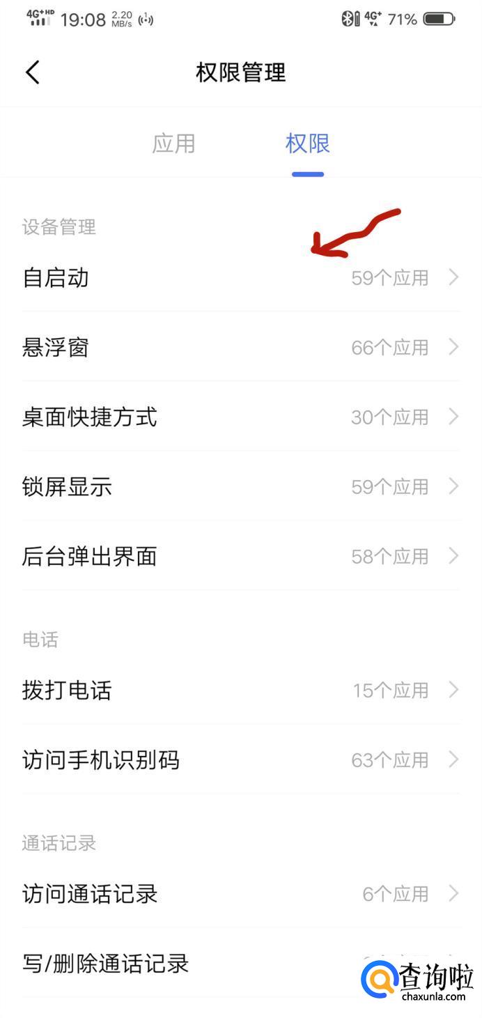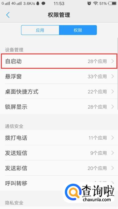 在权限管理中选择“自启动”。