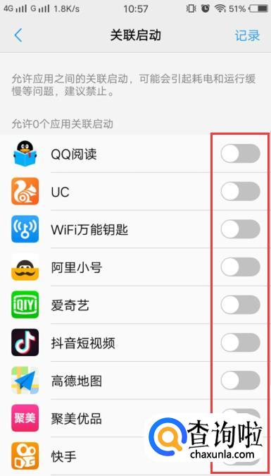 将软件后的开关关闭。这样就关闭了关联启动。如图所示。