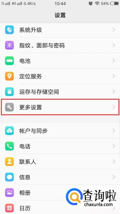 进入设置之后,找到更多设置,然后点击进入。如图所示。