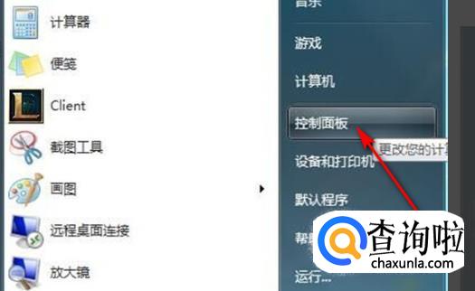 首先我们要点击开始菜单栏,然后找到并单击打开“控制面板”。