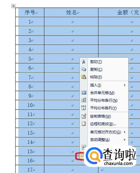 如果不能解决问题的话,就对表格行距进行设置,全选表格后,右键单击,在弹出菜单中调出“表格属性”选项框。