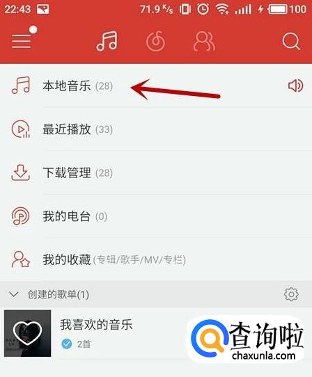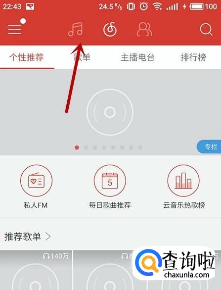 进入网易云音乐APP界面,选择左上角“音符”符号。