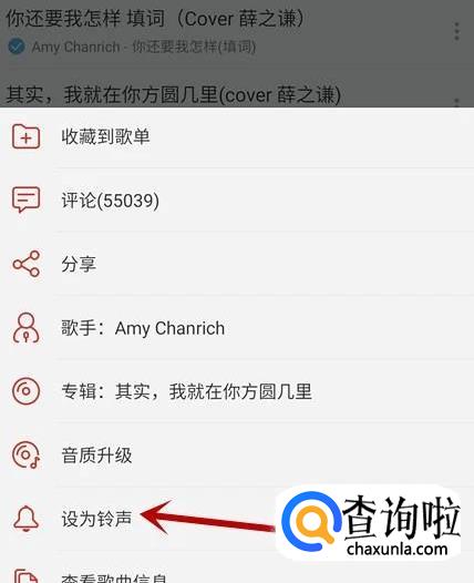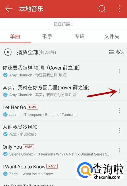 找到想要进行铃声设置的音乐,点击右侧“三点符号”。