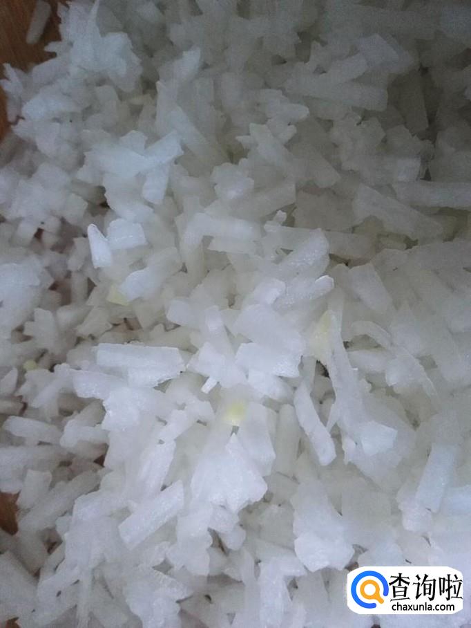 然后把准备好的萝卜切成丝,并切成末,备用。