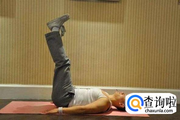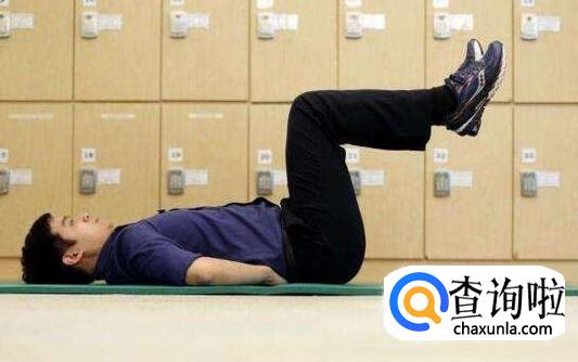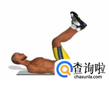 平躺于地,双手紧贴地板,双腿曲膝抬高(愈胖的人,膝盖可愈弯),再放下,反复数次,有助下腹肌的锻炼。