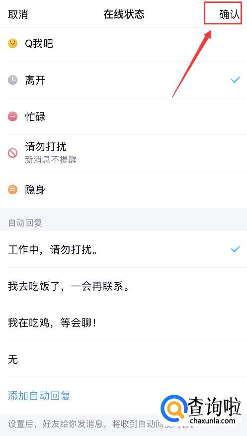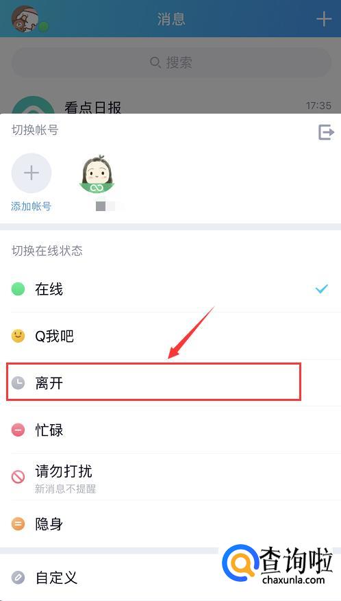 点击后,下方会弹出状态设置页面,可以切换你的状态。这里我们选择【离开】。