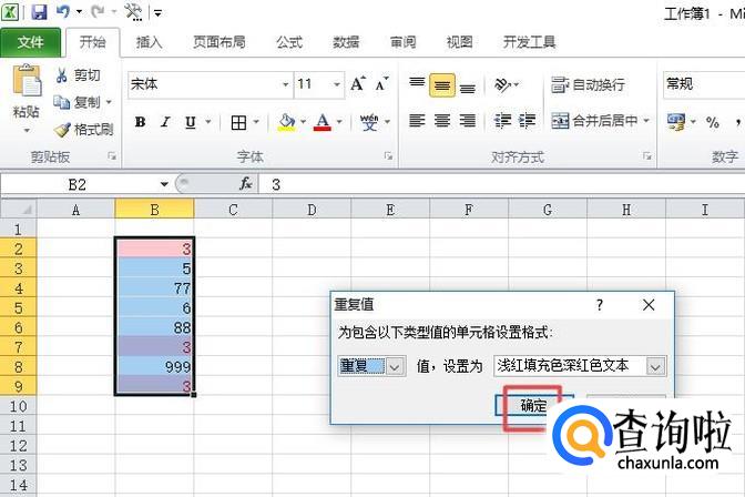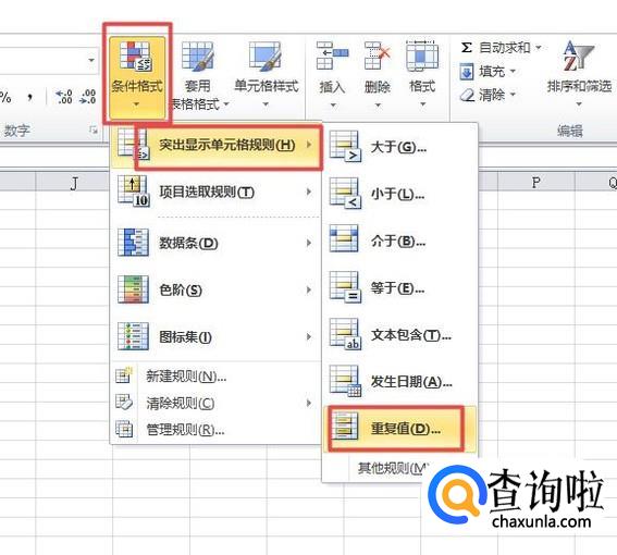 然后我们点击工具栏中的条件格式,弹出的界面,我们点击突出显示单元格规则,弹出的界面,我们点击重复值;