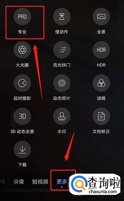 没有夜景模式的情况下,打开“更多”—“专业模式”。