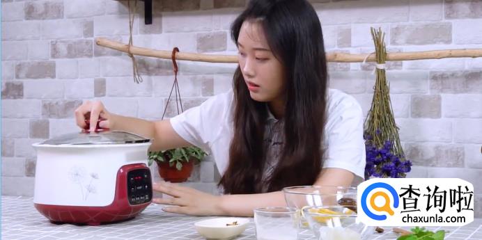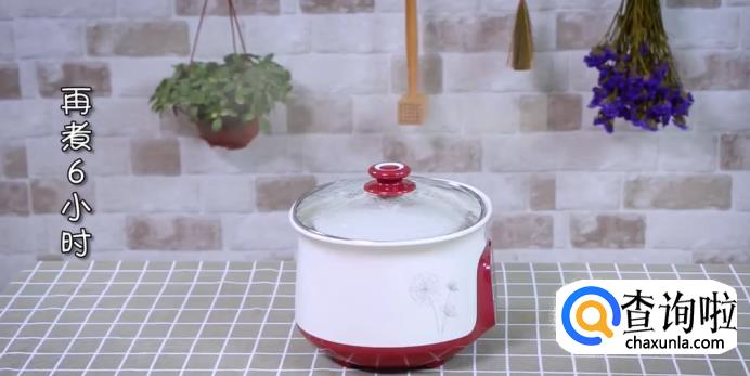 然后,在炖锅中倒入适量清水,把装满食材的锅放入炖锅中,开火炖煮4个小时。因为冰糖大部分不容易融化,所以需要先放进去炖煮。