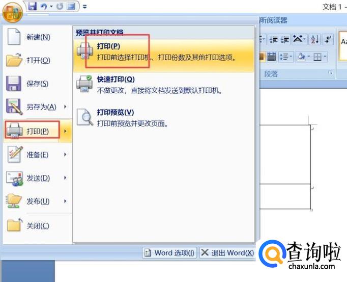 弹出的界面,我们将鼠标放在打印处,弹出的界面,我们点击打印;