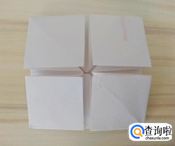 分别拉着中间的四个角沿着自己的对角线向外翻折,外形不变;