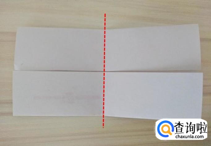 再将“长条”对折一个折痕,左右两个边沿着虚线向中间折痕对齐折叠;