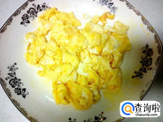 用锅把鸡蛋炒出来,炒至八分熟,盛出备用。
