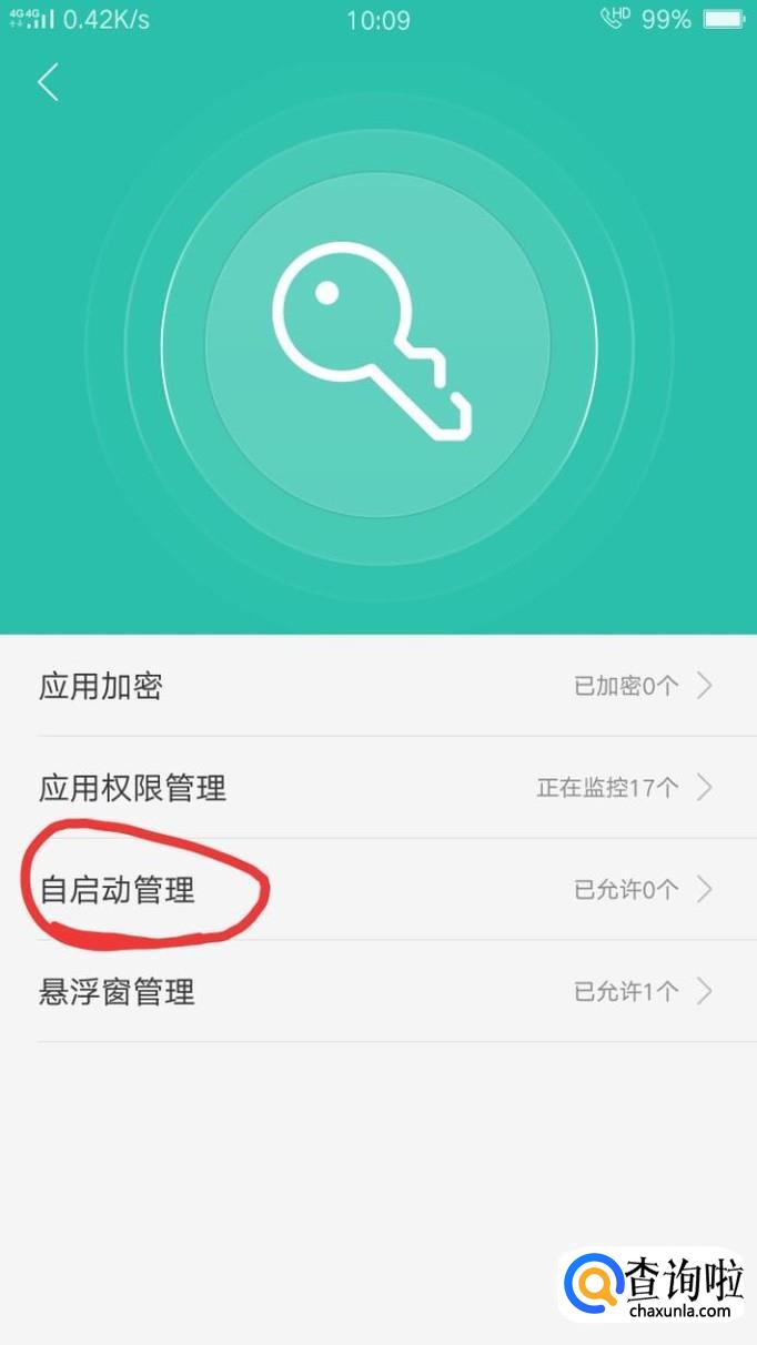 根据提示,点开“权限隐私”,选择“自启动管理”。