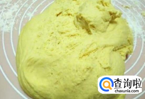 把面粉,玉米面粉和白糖混合在一起,然后加入水均匀和好,然后再加入牛奶
