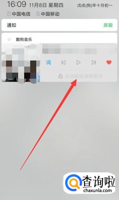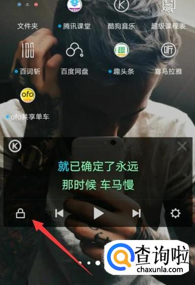 返回到桌面,点击图示位置可以将桌面歌词锁定,如图所示。