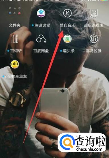 打开手机,找到酷狗音乐,点击并进入,如图所示。