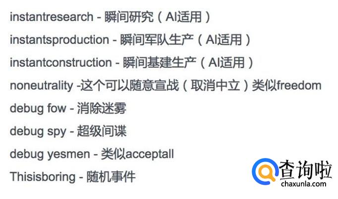 下图的秘籍中,都是对Not affecting AI生效的,少部分对玩家自己能够起作用。