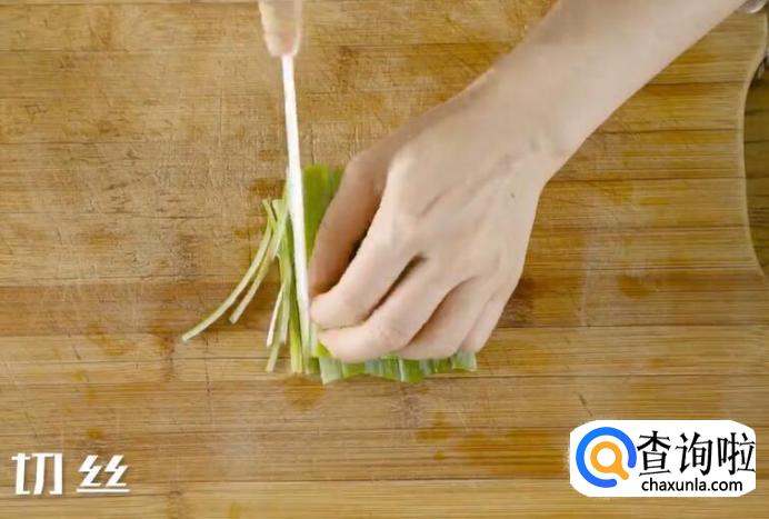 大葱切丝后泡水。