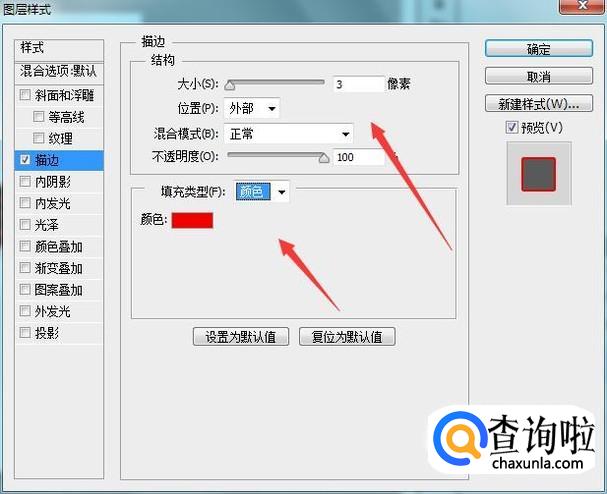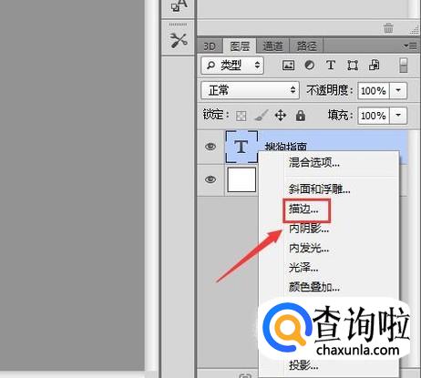 在图层里选择文字图层,然后在下面找到图层样式里的描边选项,如图所示: