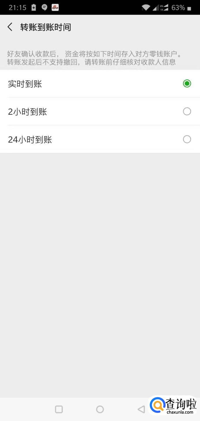 点击转账到账时间。根据自己的需要选择到账的时间。