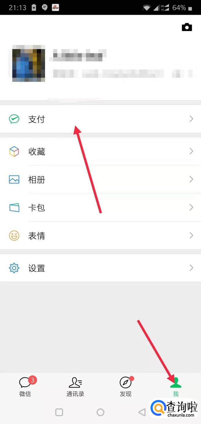 打开微信,点击“我”,进入“支付”。
