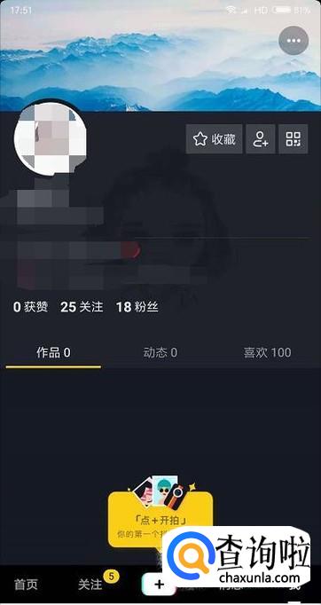 首先我们打开抖音后,在个人页面里点击下方的开拍。