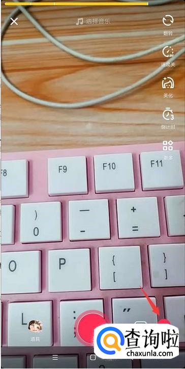 当拍摄好视频后就点击一下右下角的图标,进入到下一步操作。