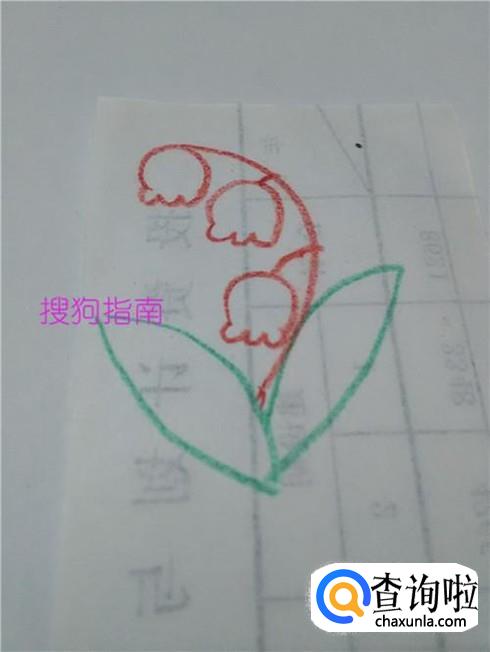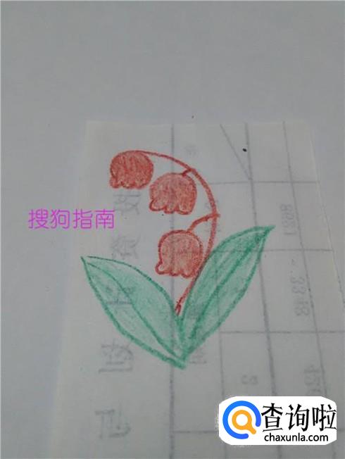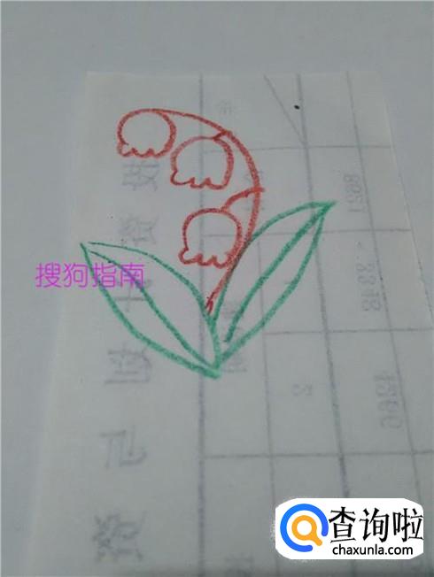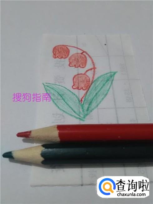 最后用红笔涂花朵,用绿笔涂叶子,铃兰就画完了。