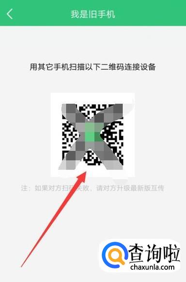 进入之后,即可看到旧手机生成的一个二维码,如图所示。