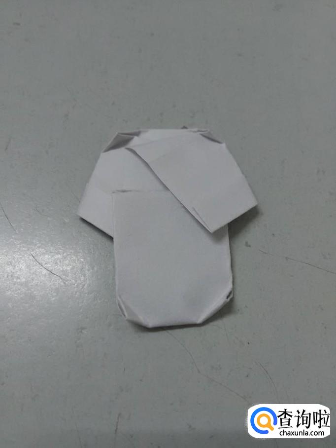 再把上下左右四个角往中间折一个小角,然后把拖鞋反过来,小拖鞋就折完了。