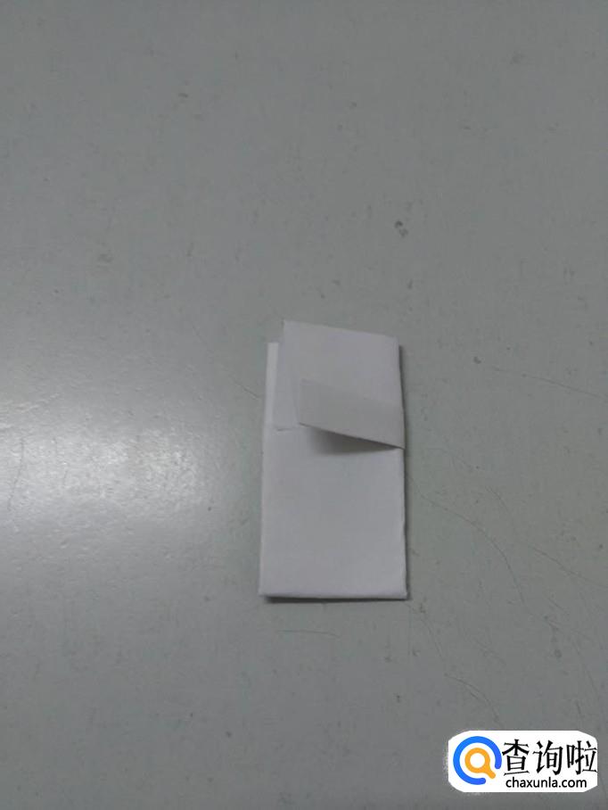 把纸反过来,把左右两边分别往中间折,右边压住左边。
