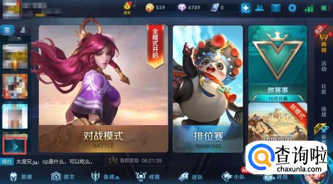 首先,我们登录我们的王者荣耀,然后我们点击图示中的那个箭头;